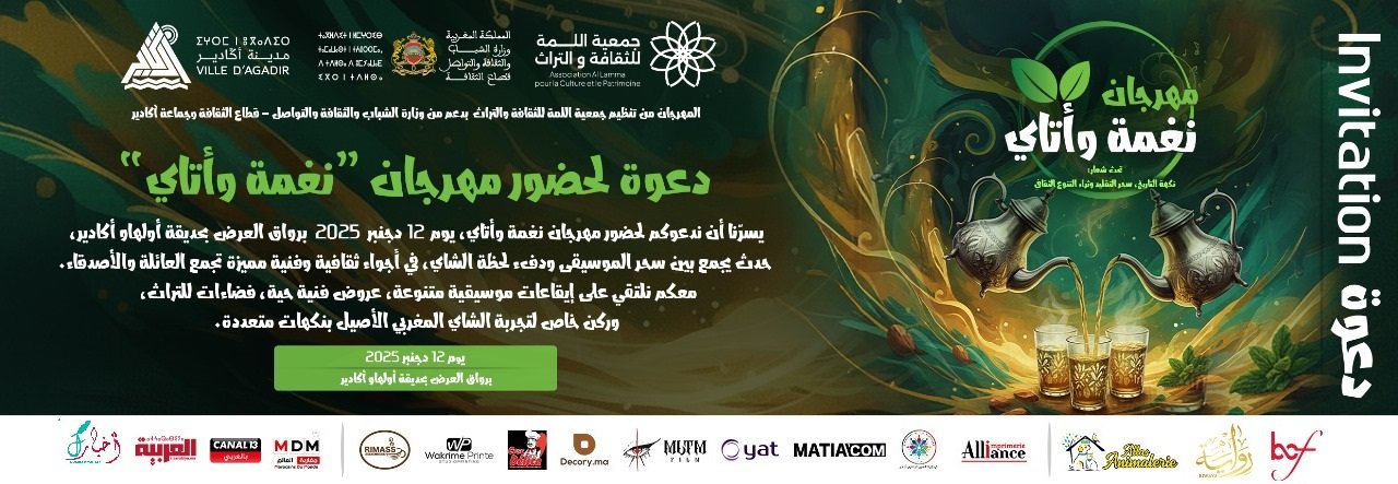 تشهد مدينة أكادير جنوب المغرب، خلال الفترة من 9 إلى 12 ديسمبر 2025، انطلاق فعاليات الدورة الأولى من معرض “لمة الشاي المغربي”، الذي تنظمه جمعية اللمة للثقافة والتراث، بشراكة مع وزارة الشباب والثقافة والتواصل وجماعة أكادير، وذلك داخل رواق العرض بحديقة أولهاو.